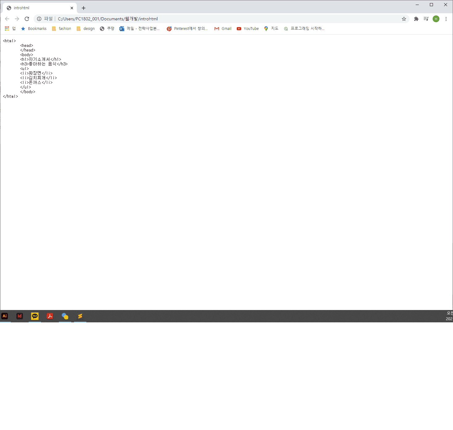 introhtml 가 현재 파일명으로 보이는데,intro.html 로 변경 후 다시 파일을 열어보시길 바랍니다!