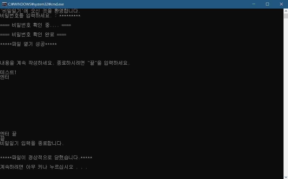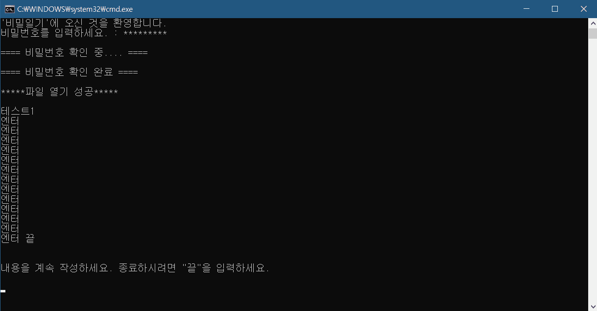 printf("비밀일기 입력을 종료합니다.\n\n");