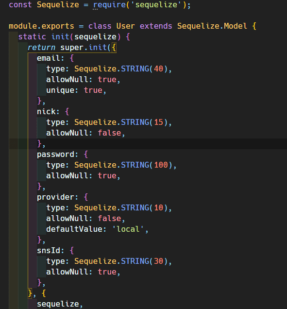 class만 씁니다. sequelize.define은 예전 강의라고 보시면 됩니다.