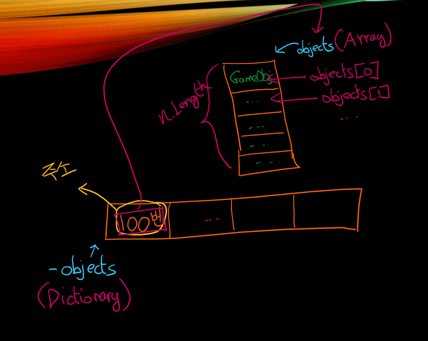 그냥 _objects라는 Dictionary에는 100이라는 숫자가 저장됩니다.