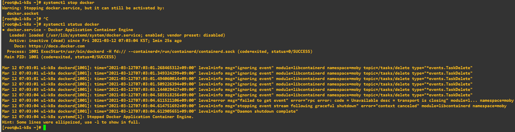 w1-k8s에서 도커 멈춤