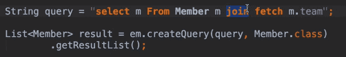 fetch join을 사용하면 조회한 결과에 다음 객체 그래프에 데이터가 모두 채워져 있습니다.