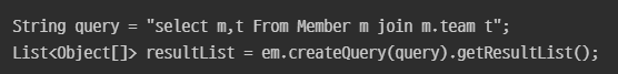 보통 로직을 계산할 때 회원을 먼저 찾고(member) 그 회원과 연관된 팀(member.getTeam())을 찾아야 하는데, Object[]은 각각 따로 조회하기 때문에 이런 부분을 처리할 때 작업 공수가 많이 들어갑니다. 반면에 페치 조인은 이미 member.team의 객체 그래프를 다 완성해두기 때문에 편리하게 해당 로직을 진행할 수 있습니다.