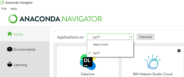 anaconda navigator로 가상환경 설정은 아래 이미지를 참고하시면 되겠습니다.