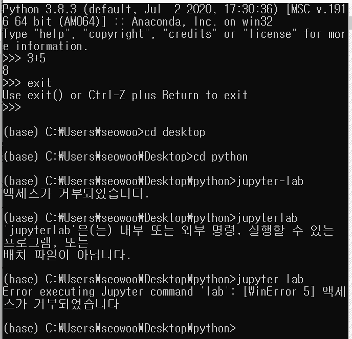 계속 거부가 돼서 아나콘다도 재설치 했는데 왜 이럴까요ㅠㅠ