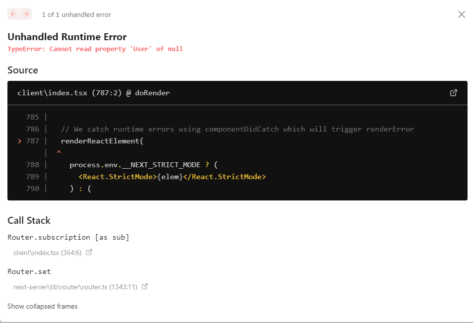정확히 /post/35 페이지에 들어간 후 Next Link 라우터로 연결되어있는 홈으로가기나 프로필 링크를 타고 들어가서 거기서 뒤로가기를 누르면 이런 에러가 발생하네요. 아직 개발모드여서 불완전해서 인걸까요?