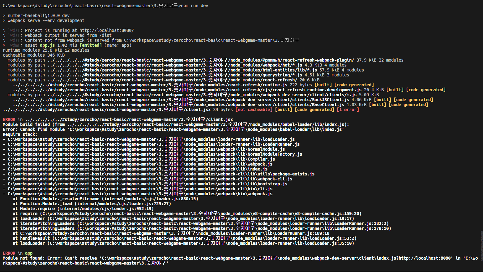 제 코드가 계속 에러가 나서 제로초님 소스코드를 가지고 npm i 하고 실행해보니 똑같은 에러가 나더라구요.
