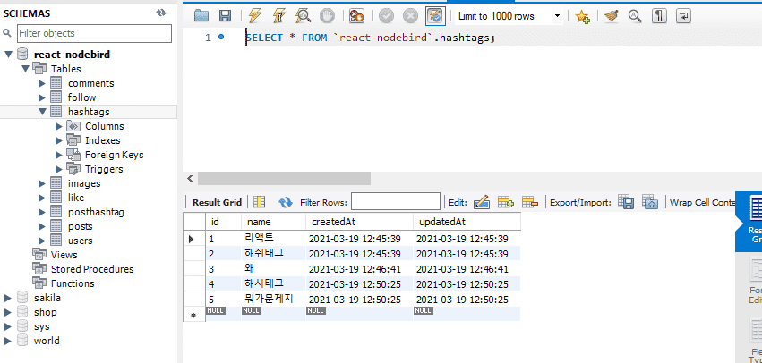 DB에는 해시태그가 잘 등록되어있는데,