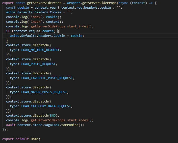 getServerSideProps 에 있는 dispatch 부분은 서버에서 실행되므로 브라우저 redux devtools에 나오지 않습니다.