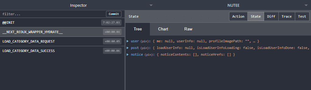 HYDRATE 액션에 데이터가 없는 것으로 실행 여부를 판단할 수 있습니다. 또한 백엔드 라우터에 요청이 가는 게 확인될 것입니다. 백엔드 라우터가 실행되고 있는지 확인해보세요.