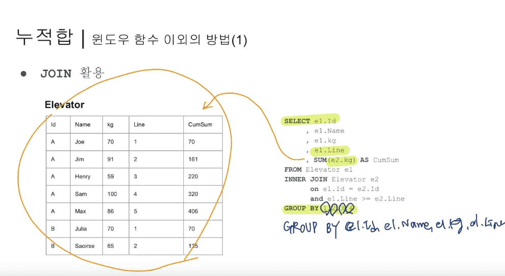 JOIN 활용한 누적합에서 (7:42) 2개 슬라이드를 보여주셨는데요,