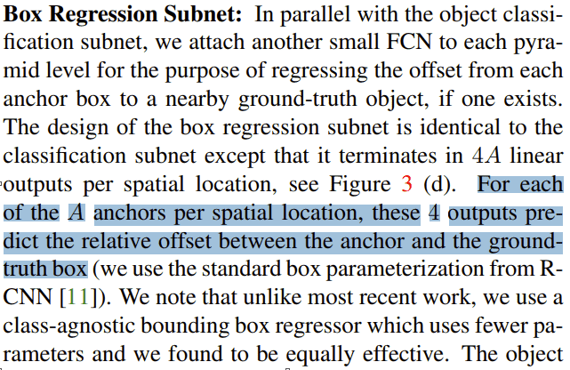=> 거의 맞습니다. 먼저 iou 0.7는 가변적입니다. Retinanet Default는 0.5 입니다. 학습시에 t - t^ 만큼을 Smooth L1 Loss에 기반하여 regression합니다.