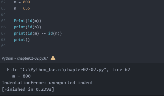 화질이 안좋은것같지만 세번째줄 print(id(m) -- id(n))