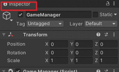 아래의 인스펙터라고 써있는 뷰가 인스펙터 뷰입니다.
