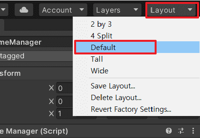 아래처럼 2분 45초 부근에 있는 오른쪽 상단에 있는 Layout 을 클릭하여 Default 로 변경하셨나요?