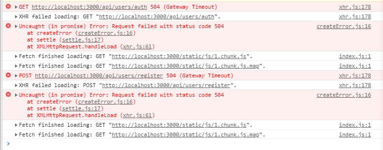 안녕하세요 angela Kim 님 서버쪽 로그를 봐야지 제대로 알 것 같습니다 ~ 그런데 아마 몽고 DB 연결이 안 돼서 그런 것 같습니다 ~~