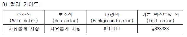 주조색 보조색은... 예를 들어 .menu li > a 호버를 했을 때 색상이나, 호버를 했을 때 배경색상이나 지시사항에 지정되지 않은 색상 범위니까 '자유롭게 지정'하시면 됩니다.