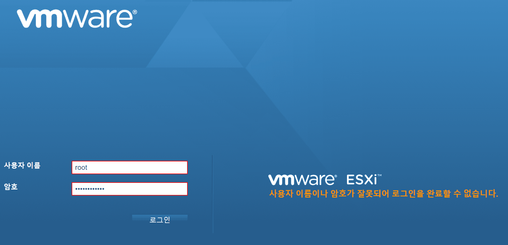 VMware ESXi 6.5, 7.0 설치 후 웹 Client로 접속 시 아래와 같은 에러 메세지가 발생하고 접속되지 않습니다.