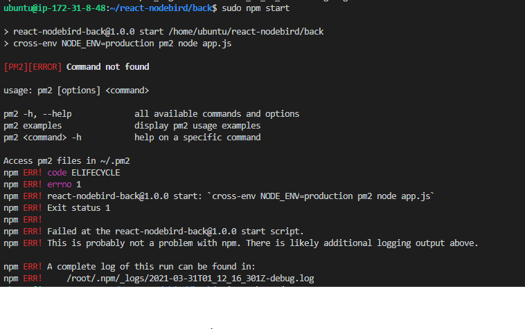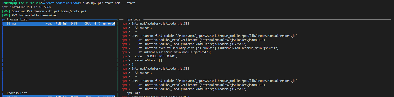 하지만 pm2를 써서 접속하면 또 똑같은 에러가 뜹니다..ㅠㅠ
