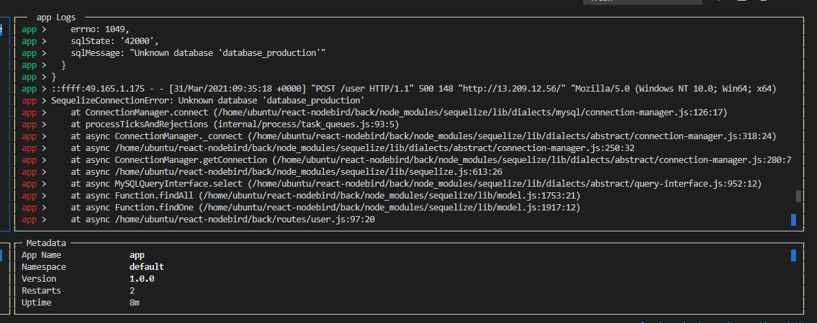 SequelizeConnectionError: Unknown database 'database_production'
