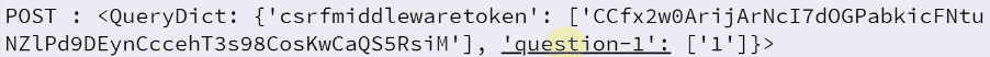 views.py의 result 함수에서 request.POST를 print 해보시고 아래와 같이 'question-1' 키값이 들어가 있는지 확인해보세요.