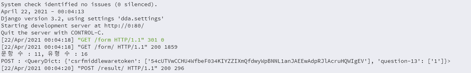 csrfmiddlewaretoken은 제대로 들어왔나요?
