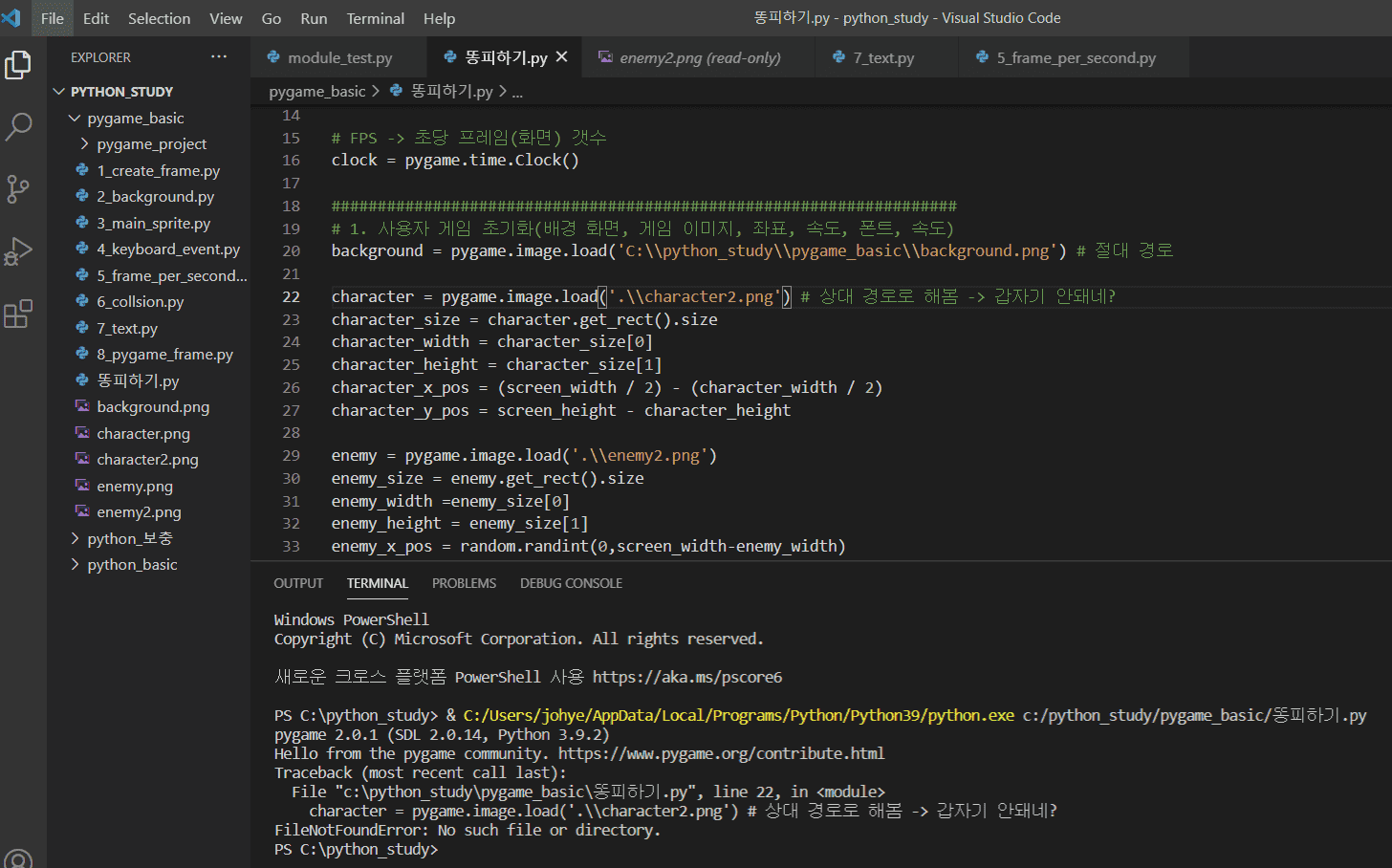절대 경로로 했을 때에는 잘 실행이 됩니다. 상대경로로 바꾸고 현재 같은 경로에 있는 이미지를 불러오 에러가 뜨네요. 저번에는 실행이 잘되었는데 뭐가 문제일까요?