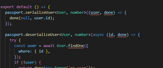 제목과 같이 serializeUser를 강의와 같이 작성시 아래와 같은 에러가 발생합니다.