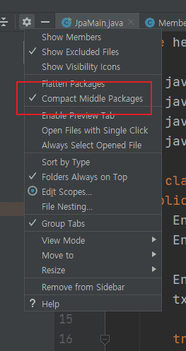 파일트리가 표시된 창 오른쪽 상단에 톱니바퀴를 누르시면 아래 이미지와 같이 메뉴가 나올텐데요,