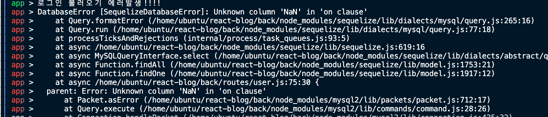 금일 EC2부터 다시 진행해봐도 같은 문제가 생겨 로그인을 불러오는 라우터에서 해당 에러를 발견했습니다. 혹시 이 문제로 로그인을 불러오지 못하는 걸까 싶어 질문을 남겼습니다..