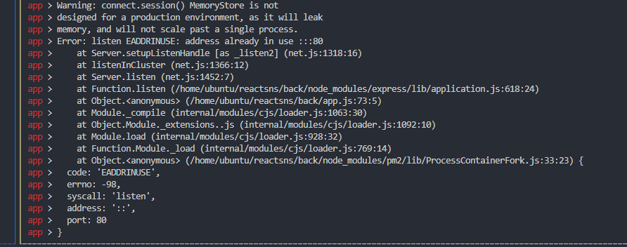 sudo npx pm2 list 해보세요. 그리고 npx pm2 list 해보세요. sudo를 붙였을 때 나온다면 sudo npx pm2 kill로 죽여야하고, sudo 안 붙였는데 list가 나온다면 npx pm2 kill로 죽여야 합니다.