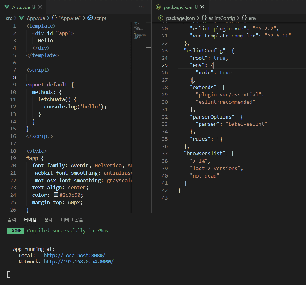 package.json의 eslintConfig는 위의 캡쳐와 같습니다.