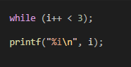 그렇기 떄문에 while(i++ < 3) ; 은 곧 while(i++ < 3) 빈 문장 ; 이나 마찬가지이기 떄문에 i 가 4 가 되어 while 문을 빠져나온 후 printf 가 실행되었기 떄문에 4 가 출력된거에요