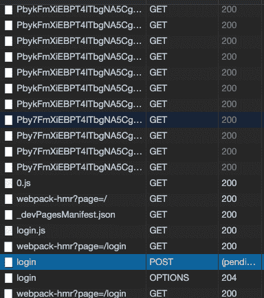 네트워크 창을 보니 status가 pending이라고 돼있습니다.