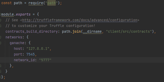 truffle unbox react한 후 truffle-config.js 파일을 수정하였습니다.
