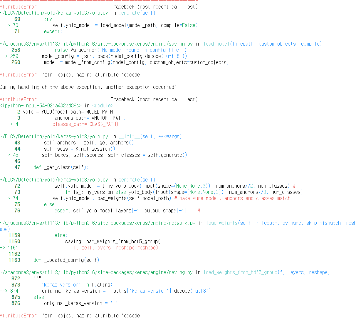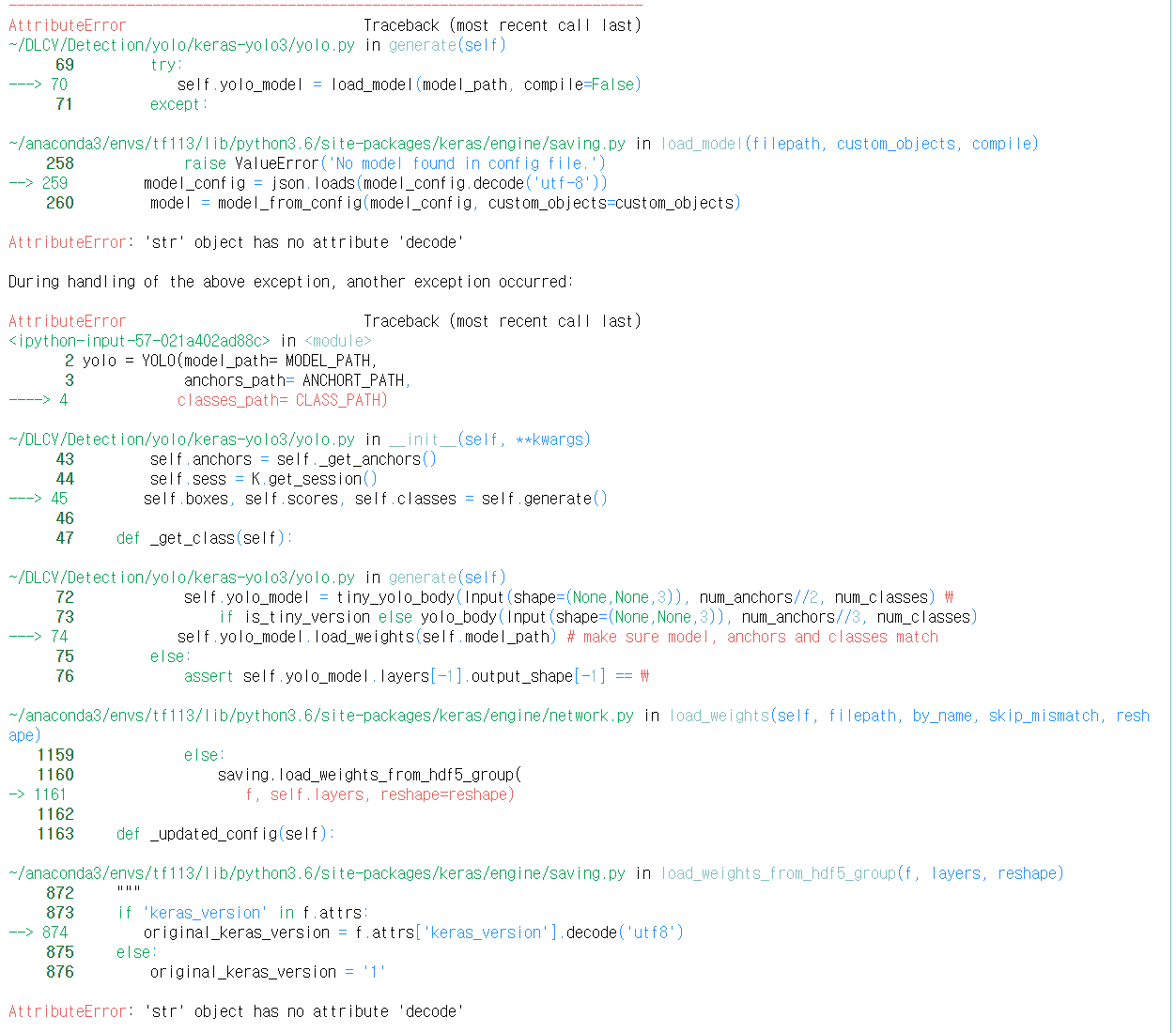 KerasYolo 이미지와 영상 Detection 강의 중 오류가 발생했습니다.
