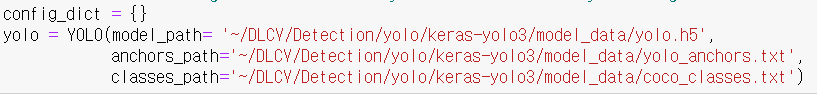 디렉토리 경로는 'hoem/compu/DLCV/Detection/yolo/keras-yolo3/model_data/yolo.h5'입니다.