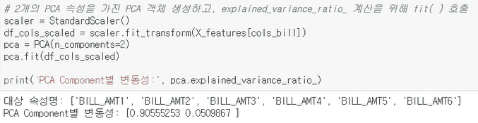 BILL_AMT1~BIL_AMT6는 상관관계가 높아서 PCA변환하면 적은 n_components로도 원본 feature의 성능 저하가 크지 않게 변환 될 수 있습니다. 그리고 다른 PAY1~PAY6역시 상관 관계가 높기 때문에 전체적으로 n_components를 6 정도만 해도 원본 feature 그대로 예측하는 것 대비 성능이 떨어지지 않을 거라 생각해서 적용한 것입니다.