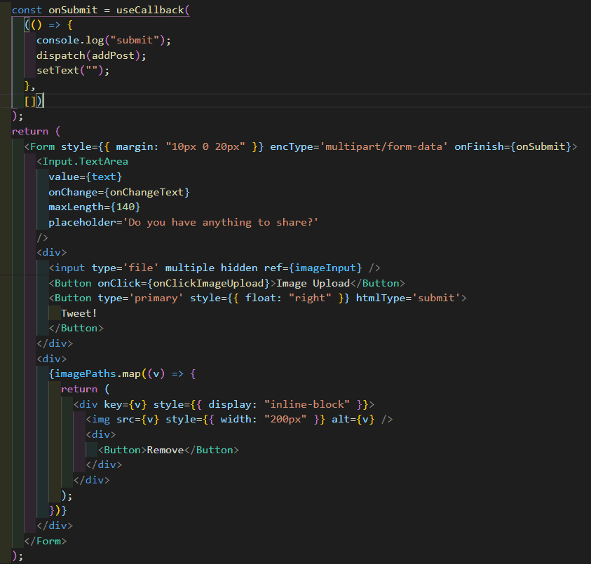 onSubmit에서 감싼 하늘색 ()를 빼세요. ()도 연산자라서 함부로 감싸면 안됩니다.