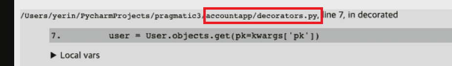 profileapp 의 데코레이터가 아닌 accountapp 의 데코레이터에서 에러가 난 것으로 확인이 됩니다.