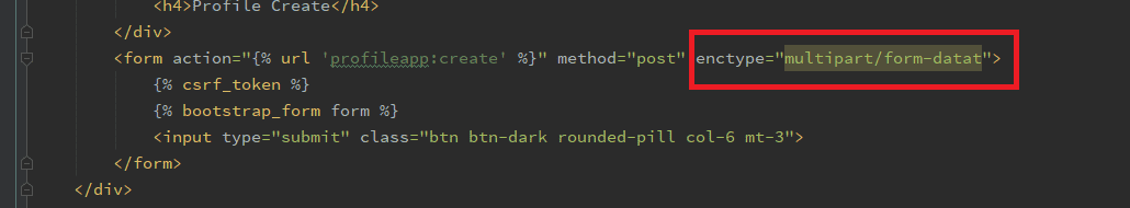 그리고 추가적으로 profile 앱의 create html 부분에도 오타가 있더라구요