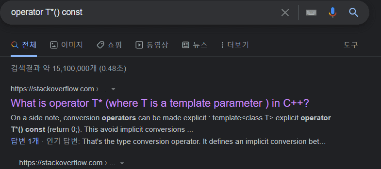 이부분이 Nullptr클래스가 T*를 생성?해줄때 0포인터를 반환 한다고 보는것이 맞나요?