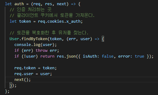 그리고 아래와 같이 auth에서 user 관련 로그를 찍어보면 NULL이 찍힙니다.