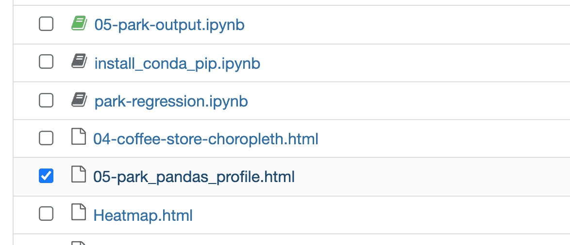수업과 같은 방법으로 실습을 하셨다면 주피터 노트북이 있는 경로로 가면 아래와 같이 html 파일이 보일거에요.