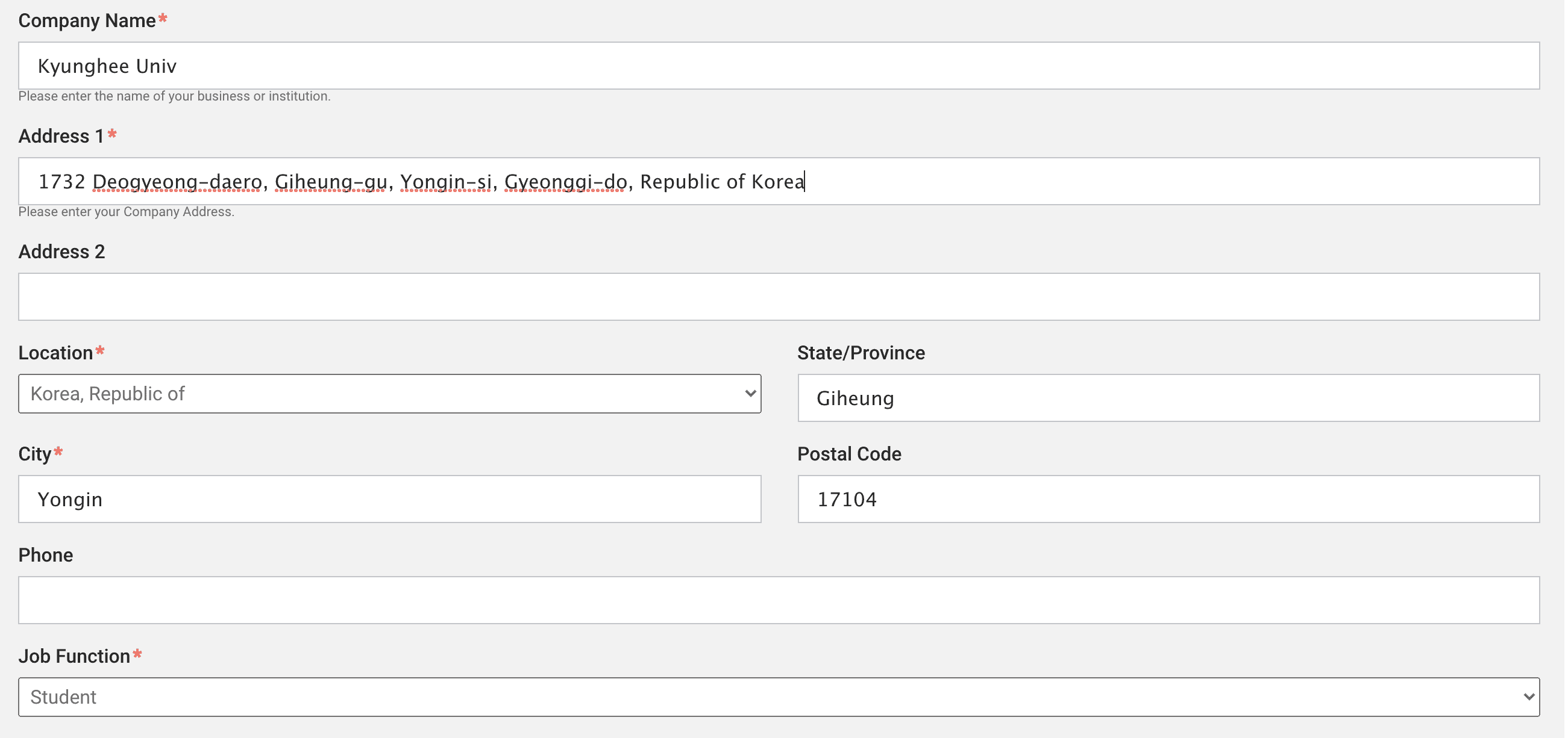제가 자일링스 가입하고 리눅스 다운누르고 개인정보 입력하는게 있는데 회사주소랑 이름 그런걸 입력해야하는데 제가 학생이라서 불가능하네요,, 이경우는 어떻게 해야할까요