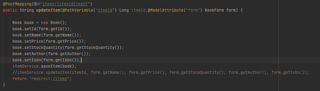 updateItem메소드에서 @ModelAttribute 이 부분이