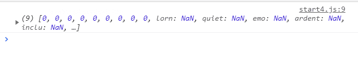 질문의 숫자만큼 초기화 된 0 이후로 object형태로 저장되고 있는 것 같습니다.