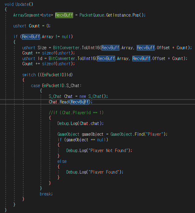 이처럼 들어온 RecvBuff를 바로 PacketQueue에 넣어줫습니다.