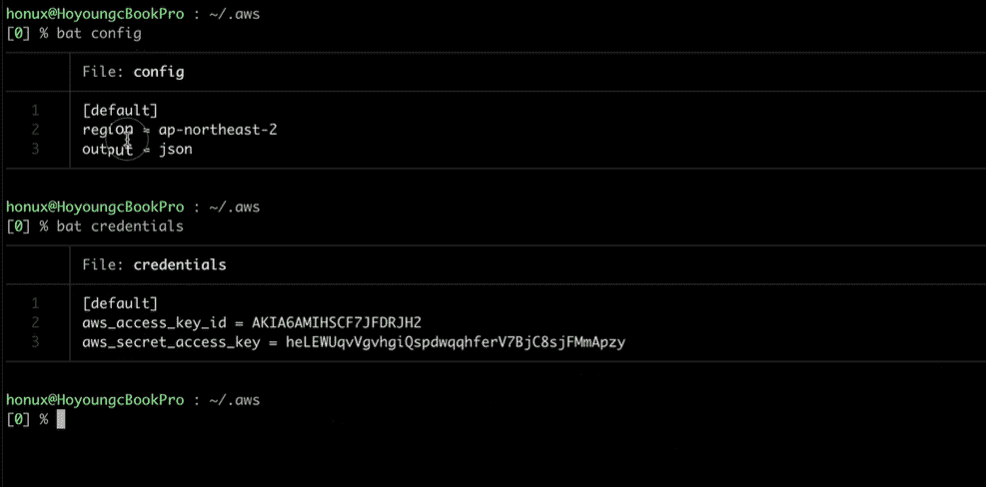 CLI 명령은 본 수업의 사전 지식과 같은 건데 cat과 bat은 다 유닉스 계열 (리눅스, 맥)에서 사용하는 명령입니다. 둘 다 그냥 파일의 내용을 보는 명령이구요. 리눅스의 기초는 익혀야 aws를 사용할 수 있습니다.