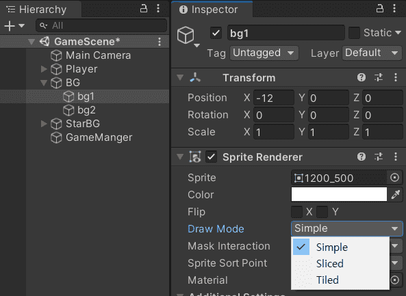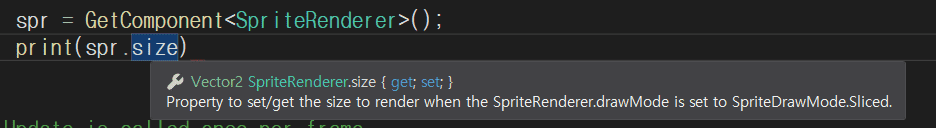 변수에 마우스를 호버해보면 도움말이 살작 뜨거든요. spriteRenderer.drawMode 라는것이 있는데요.